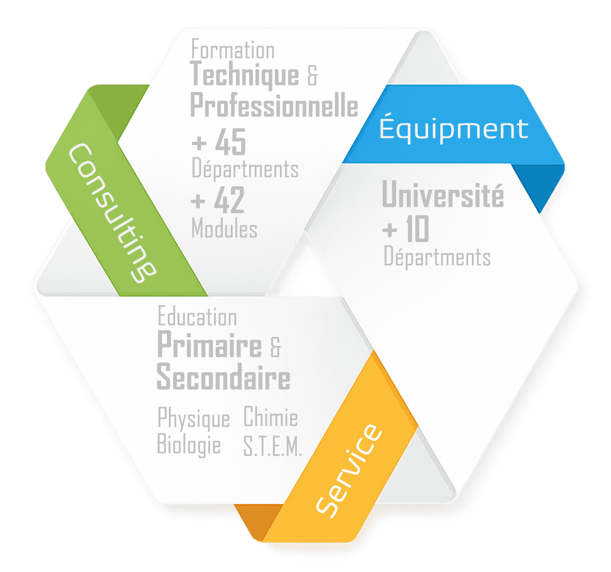 DMH propose +20 Départements Principaux couvrant les domaines classiques de l'éducation technique et professionnelle, complétés par plus de 25 Sous-Départements spécialisés.