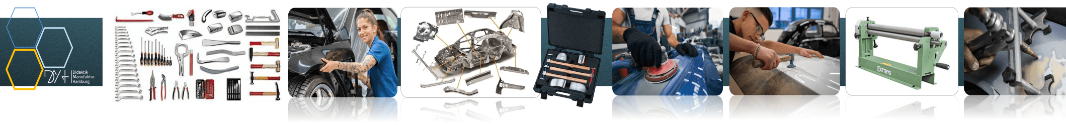 Our comprehensive offering includes all tools, machines, and equipment required for hands-on training in sheet metal processing, body construction, and vehicle repair in the automotive sector.